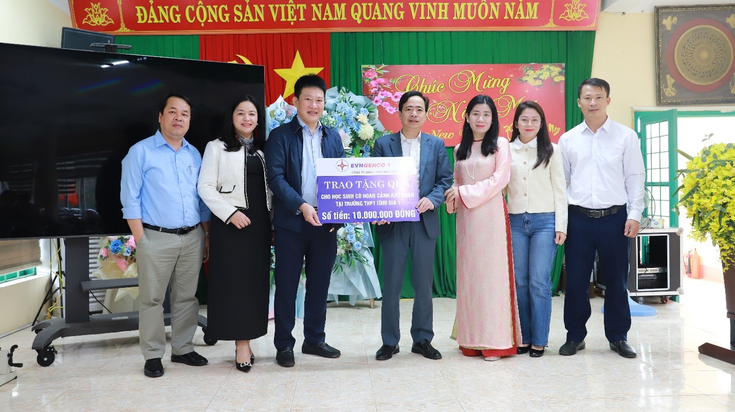 Đại diện Công ty Nhiệt điện Nghi Sơn trao tặng quà Tết cho các em học sinh có hoàn cảnh khó khăn tại Trường THPT Tĩnh Gia 1.