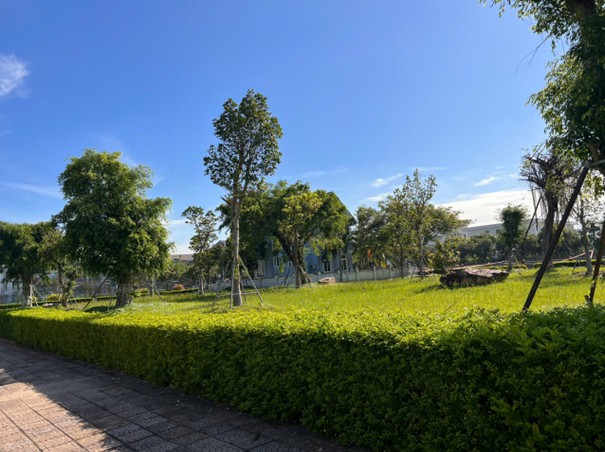 Cây cỏ được cắt tỉa gọn gàng, sạch sẽ, không có rác quanh khu vực Kho than