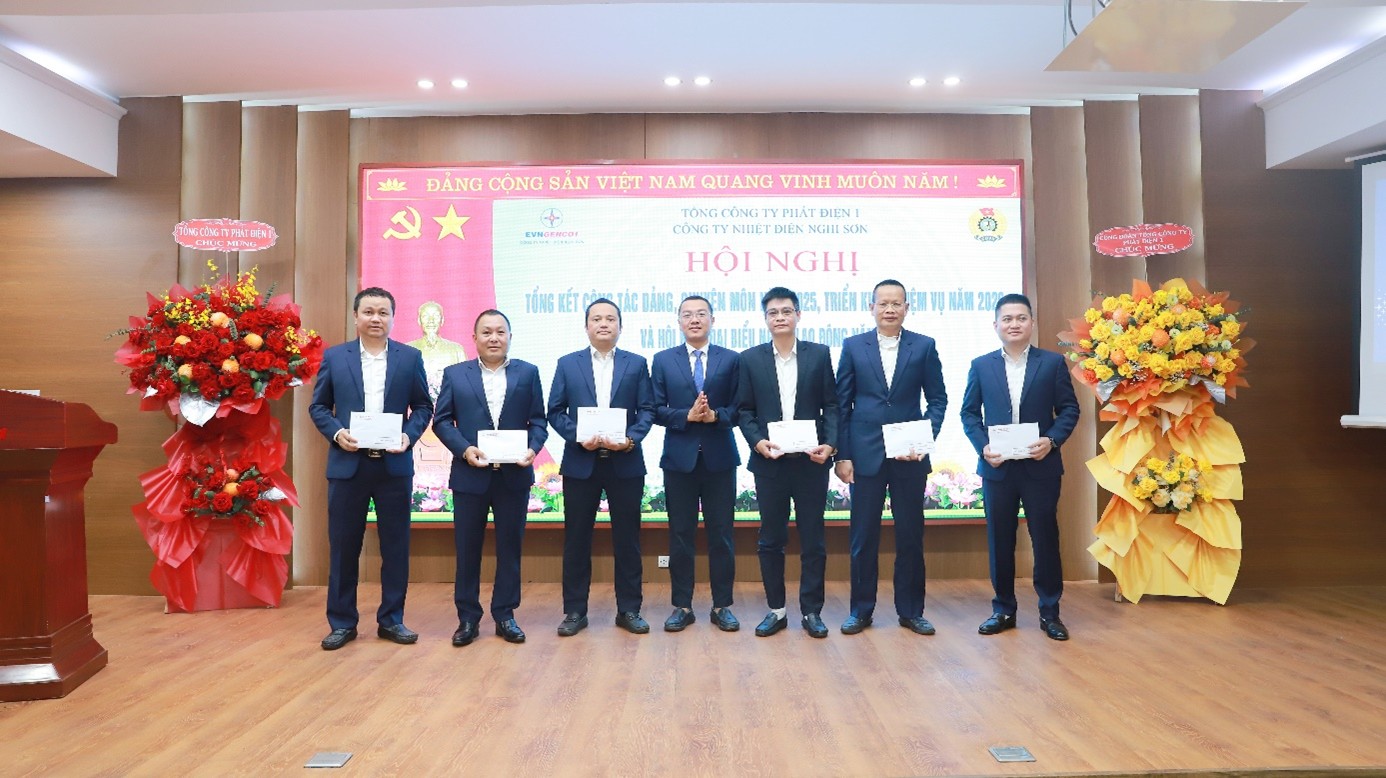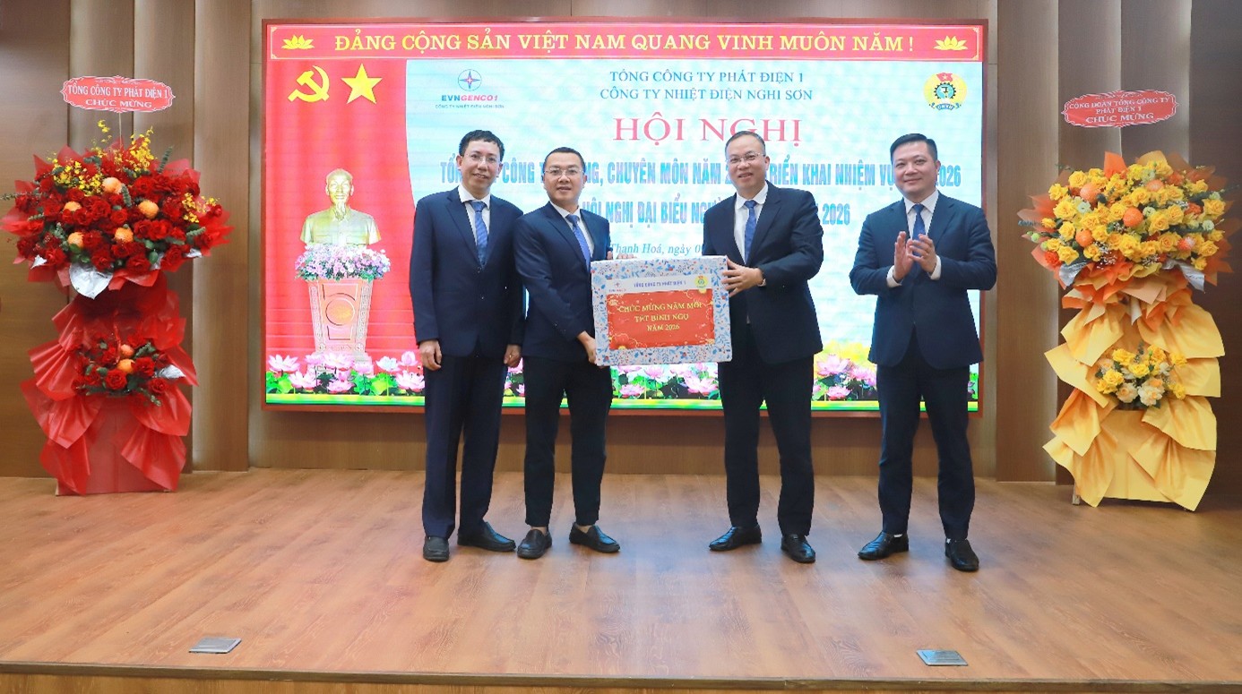 Cũng trong khuôn khổ hội nghị, Công ty đã tổ chức biểu dương khen thưởng các tập thể, cá nhân có thành tích xuất sắc trong lao động sản xuất năm 2025. Lãnh đạo EVNGENCO1 tặng quà chúc mừng Xuân Bính Ngọ 2026 cho tập thể CBCNV Công ty Nhiệt điện Nghi Sơn.