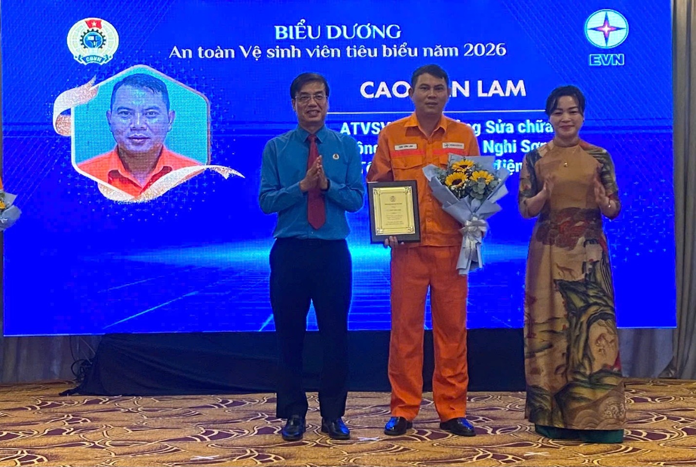 Đặc biệt, anh Cao Văn Lam là 1 trong 3 cá nhân tiêu biểu của Tổng công ty Phát điện 1 (EVNGENCO1) được lựa chọn đề nghị EVN khen thưởng năm 2026 - sự ghi nhận xứng đáng cho những nỗ lực bền bỉ, tinh thần trách nhiệm và đóng góp nổi bật trong công tác an toàn, vệ sinh lao động tại đơn vị.